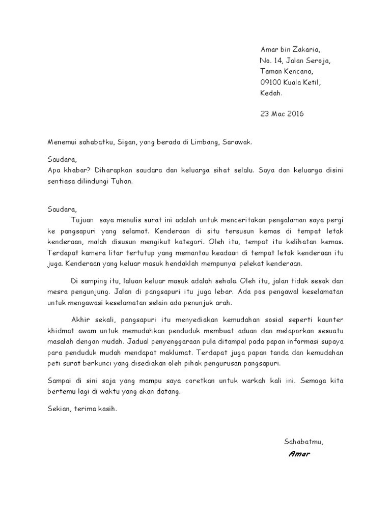 Contoh karangan surat kiriman tidak rasmi tulis sepucuk surat kepada sahabat anda untuk menceritakan pengalaman anda sekeluarga bercuti di . Contoh karangan surat kiriman tidak rasmi tentang keselamatan di pangsapuri. Tanaman dan pokok dalam rumah kena pilih yang mudah ditanam dengan cuaca malaysia.
